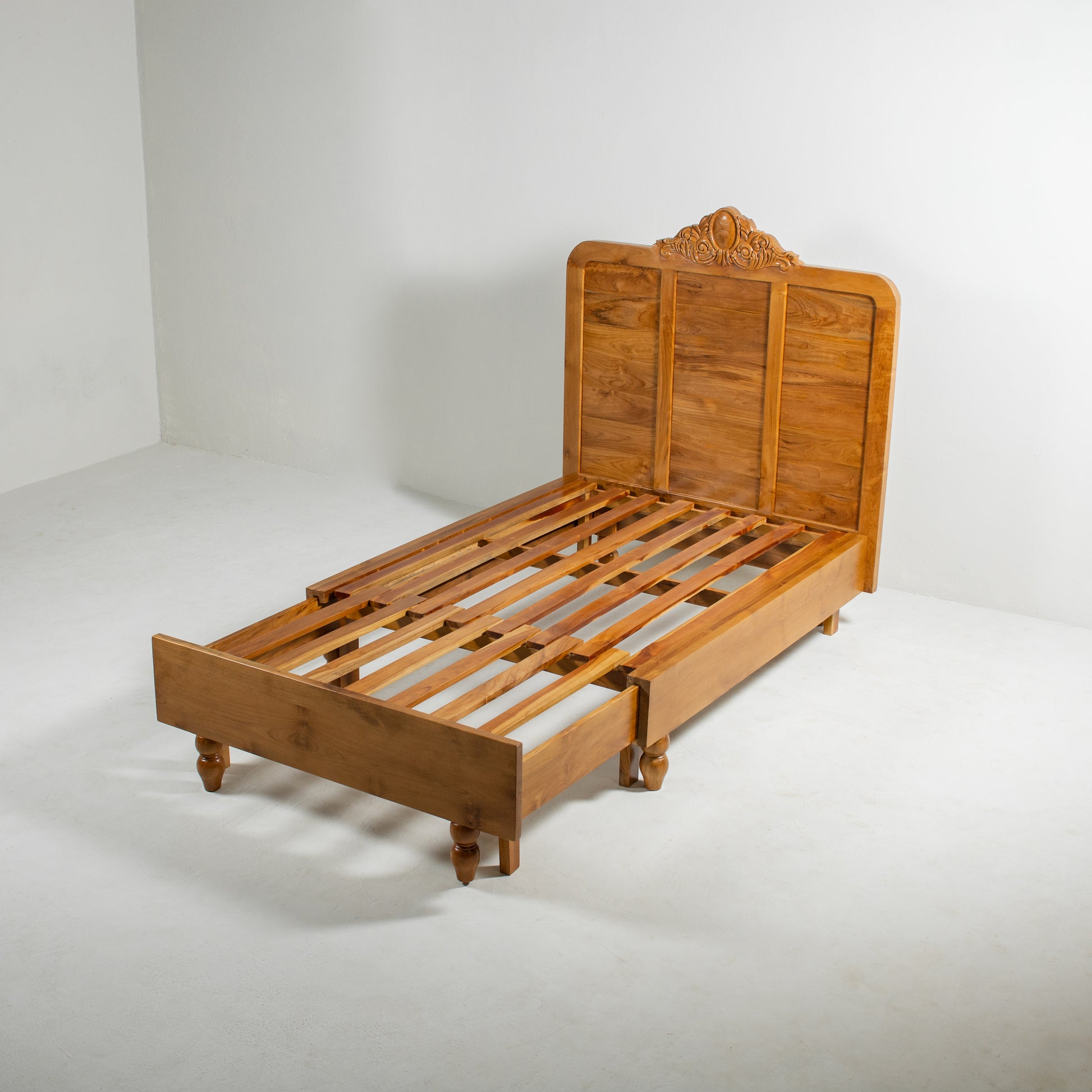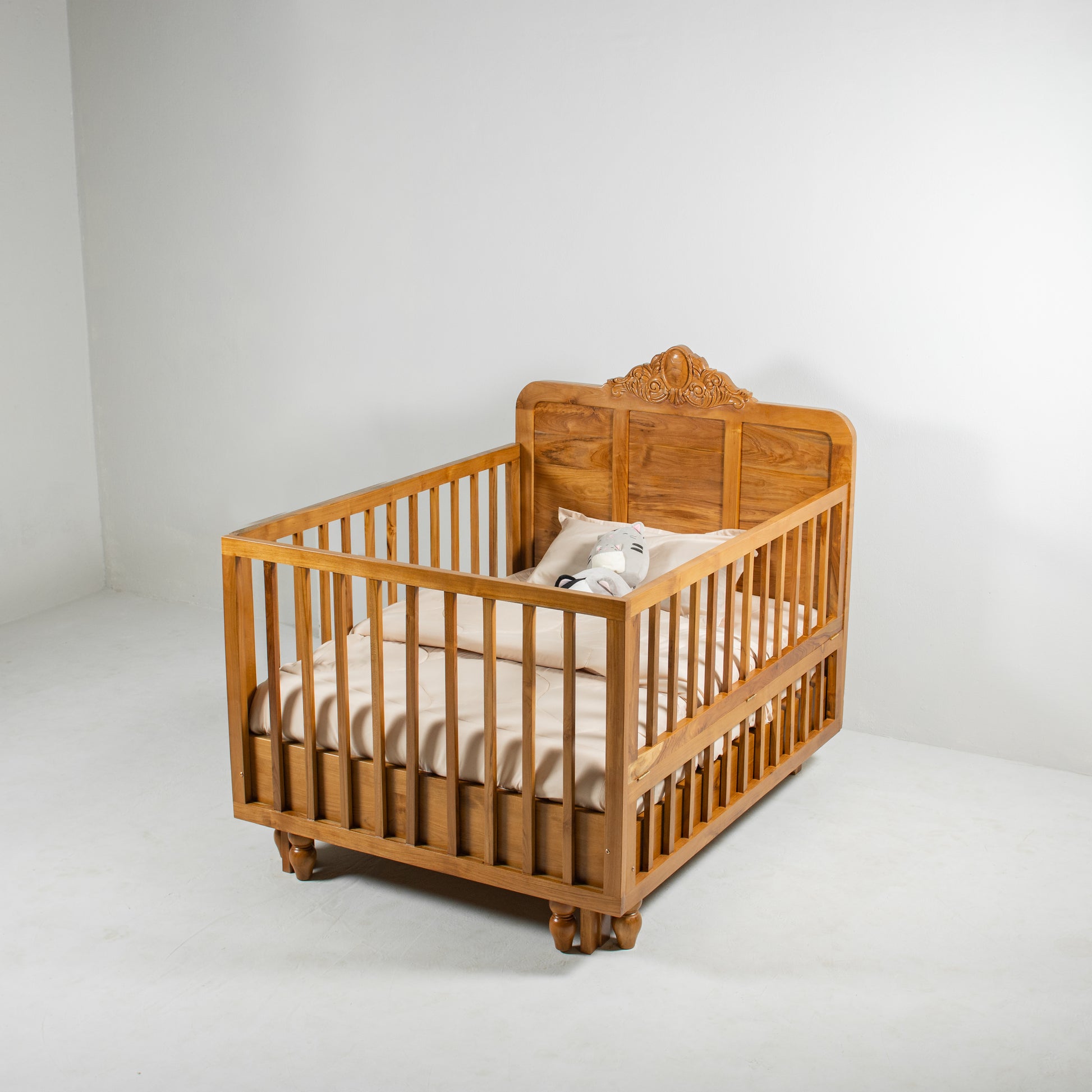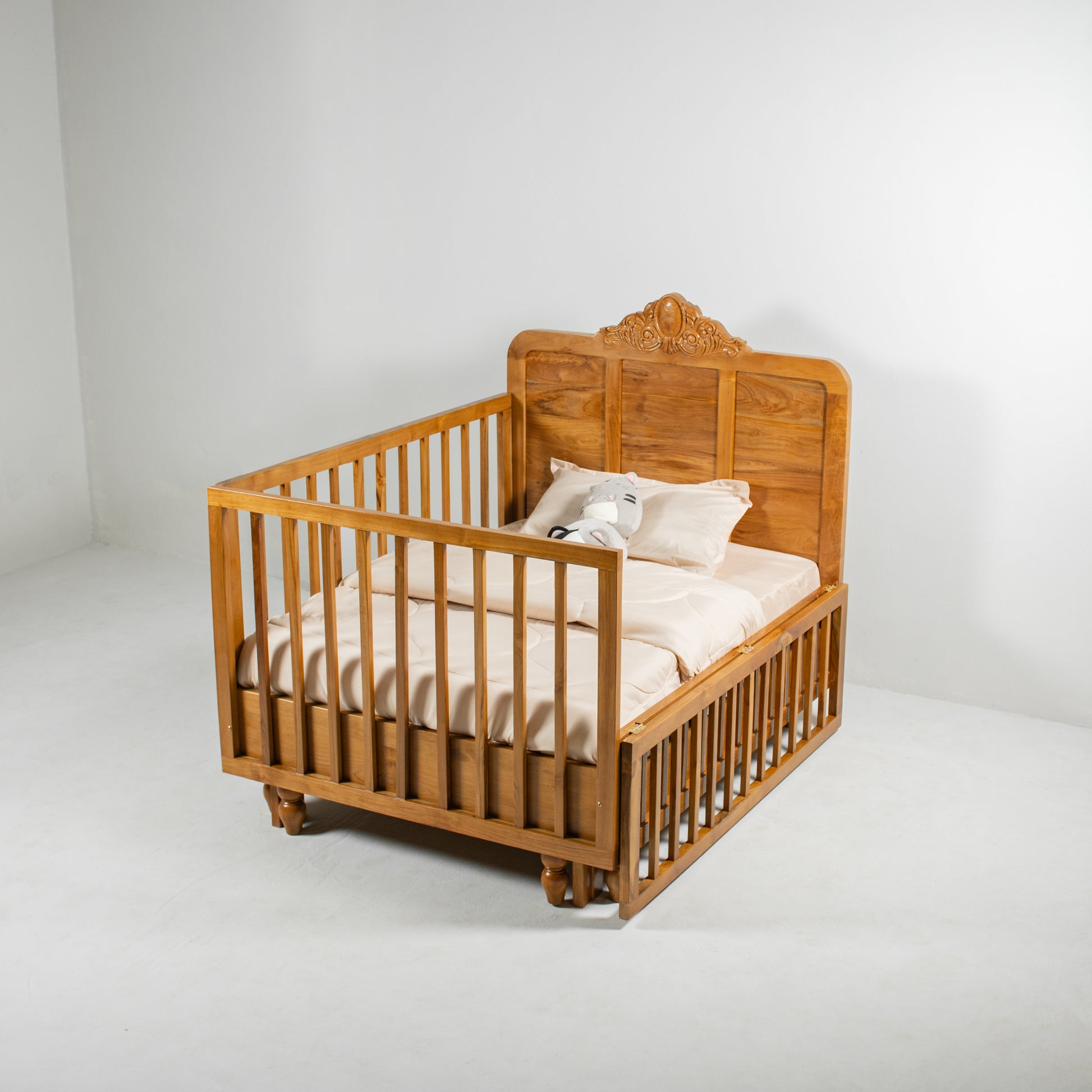 هذا السرير غير عن أي سرير ثاني… مصنوع يدويًّا من خشب الساج الطبيعي — متين، آمن، ورائحته طبيعية تملأ المكان وأكثر شي تحبه الأمهات؟ إن الجنب يفتح بكل سهولة علشان وقت الليل، ما تحتاجين تقومي كثير… تسحبين صغيرك بحنان، وبعدها تسكّرين الجنب بأمان تام، علشان ما يطيح ولا يتحرك. ومع الوقت، لما طفلك يكبر شوي شوي، السرير يتمدّد معاه — من سرير مواليد إلى سرير طفل، وبعدها إلى سرير كبير يعيش معاه سنين. والأجمل؟ كل مرة تمدّدين السريرنرسل لك مرتبة جديدة حسب المقاس الجديد — جاهزة ومريحة. سرير واحد، مريح لك ولطفلك.