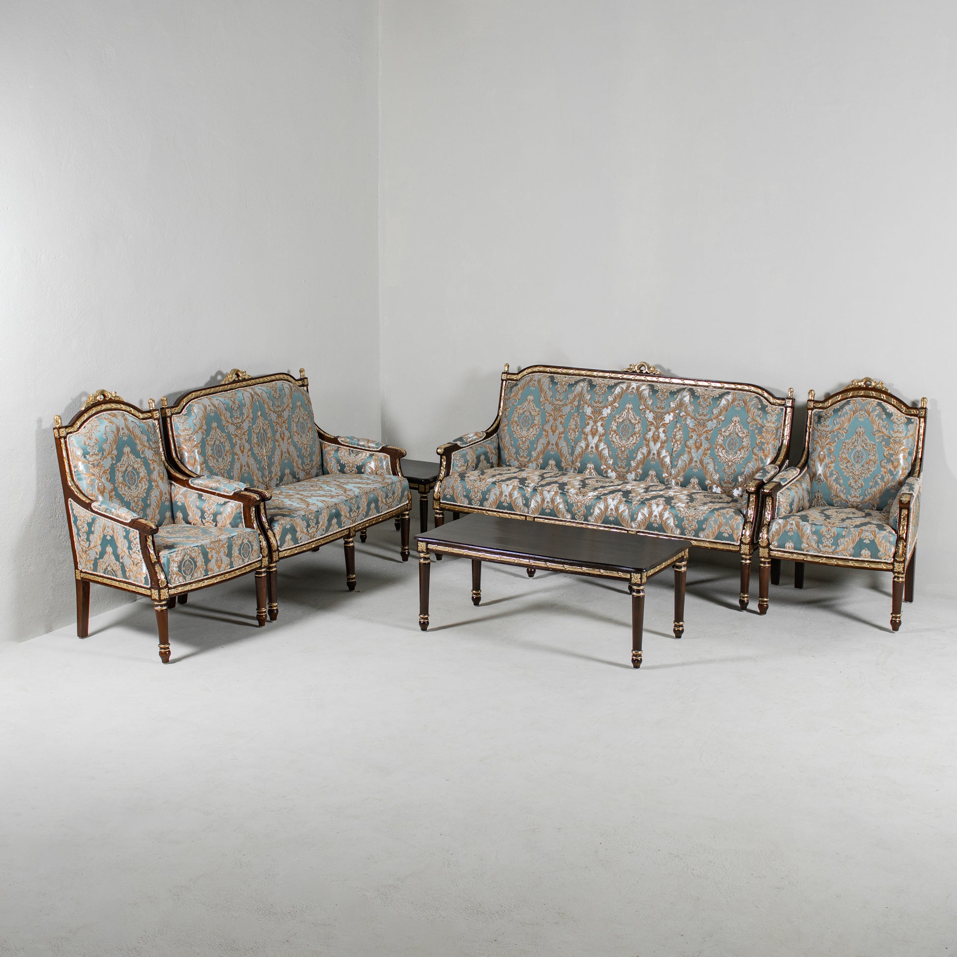 Make a statement with this luxurious 7-seater teak wood sofa set, featuring a stunning golden finish and complete with one center table and one side table. Crafted from solid teak wood, this set blends elegance, comfort, and durability. Fully customizable to suit your preferred fabric, color, and finish.