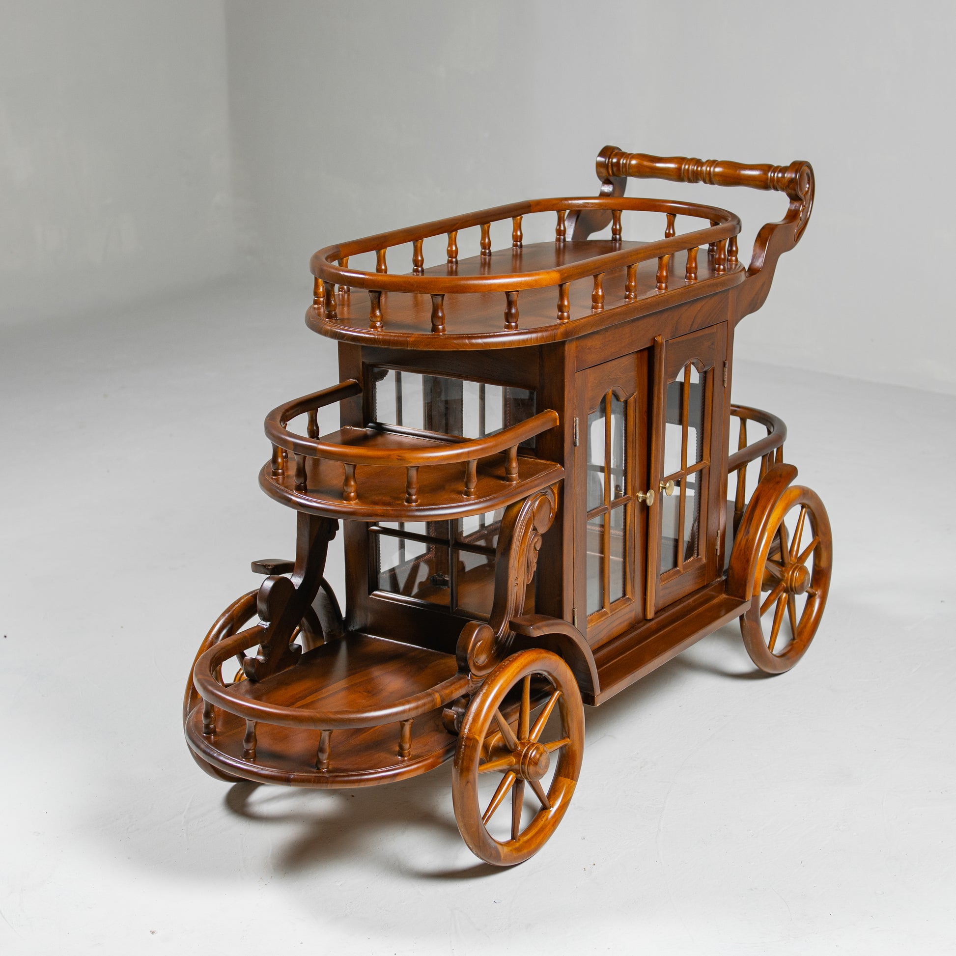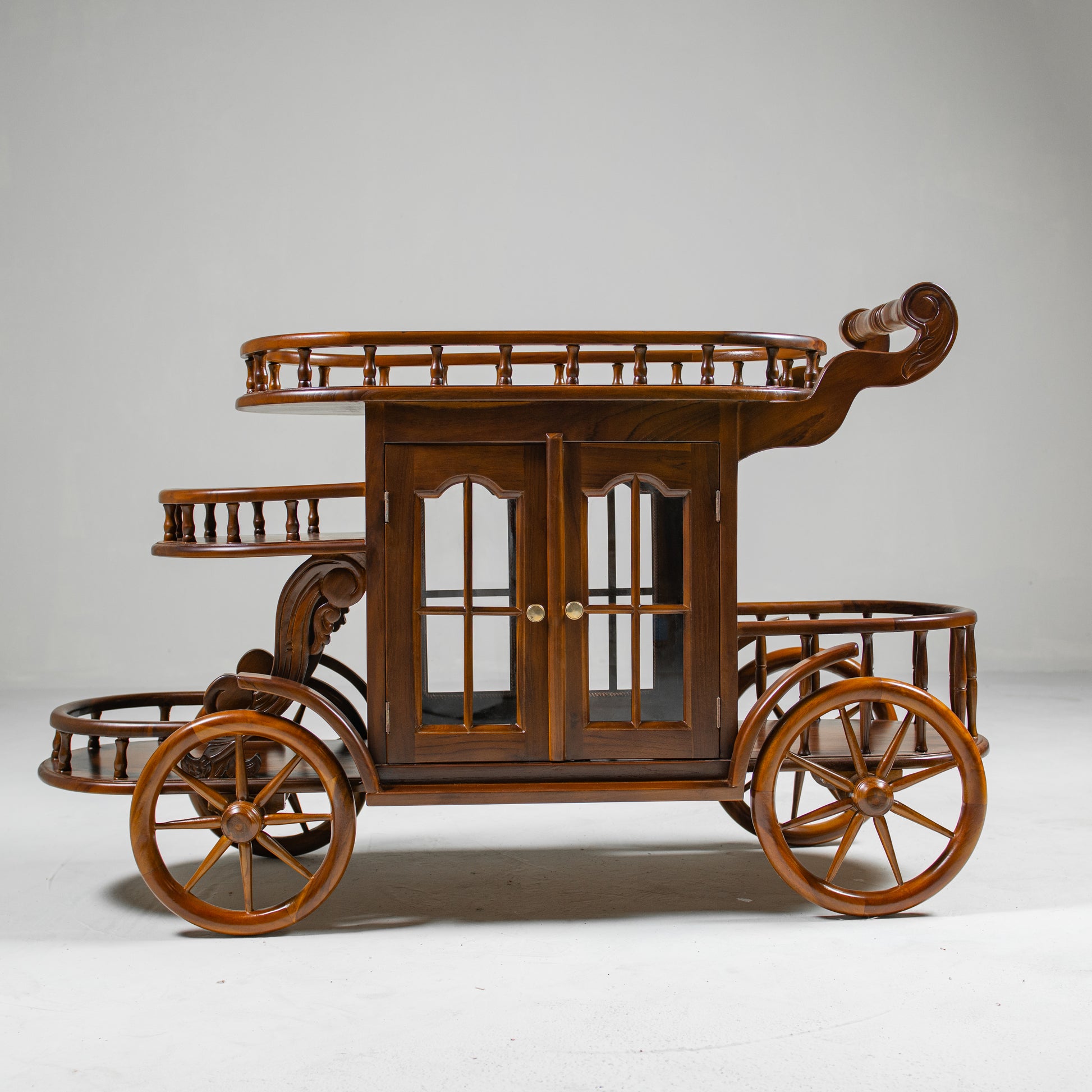 More than just a bar trolley, this handcrafted teak wood piece tells a story of refined taste and quiet luxury.