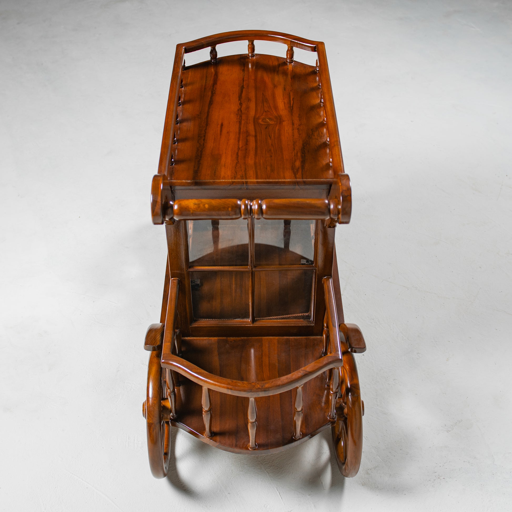 This masterfully handcrafted teak wood bar trolley brings an old-world charm into modern living. With its vintage carriage-inspired design, curved edges, and glass-paneled storage, it doesn't just serve — it captivates.